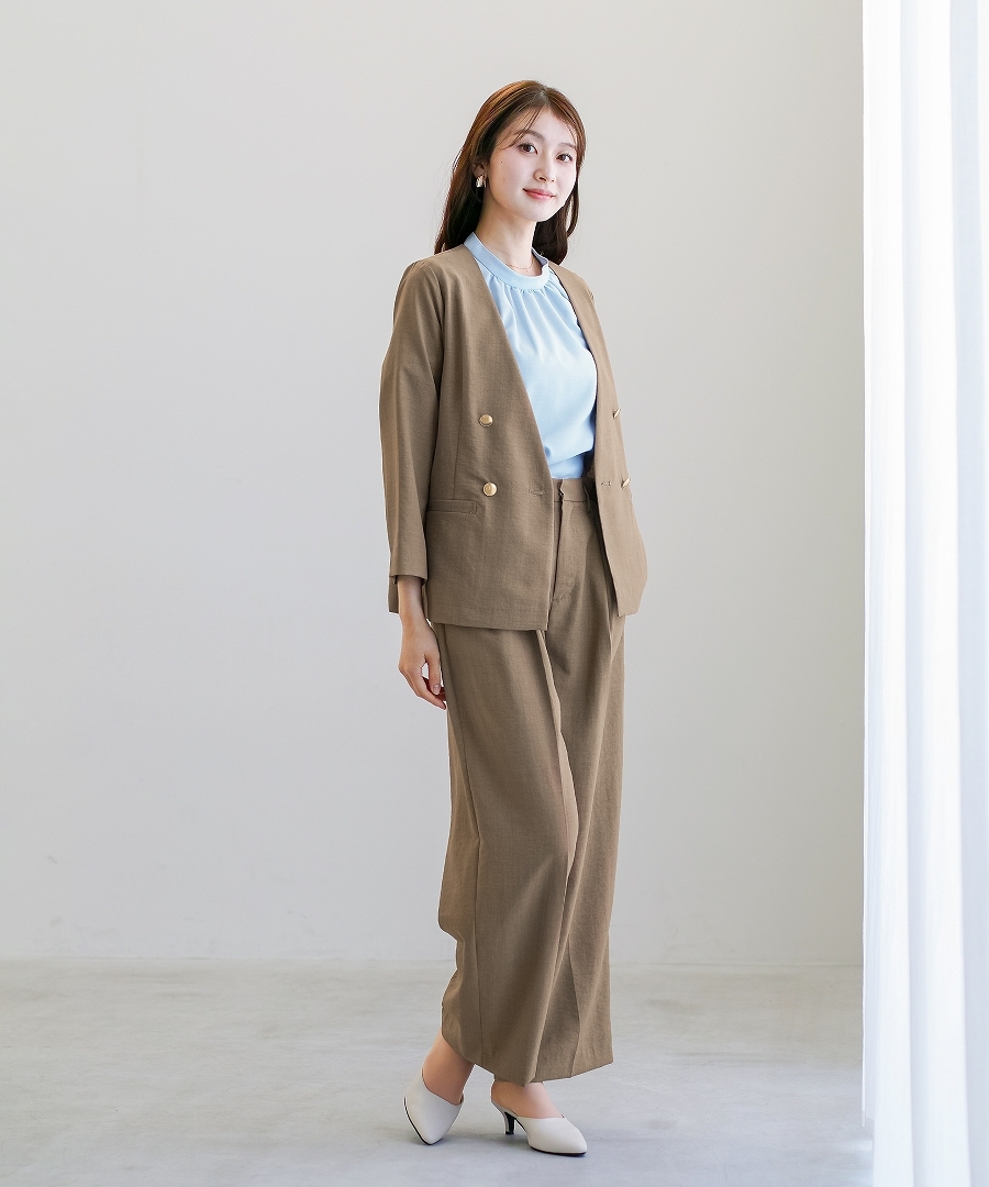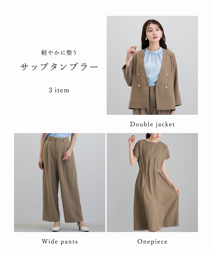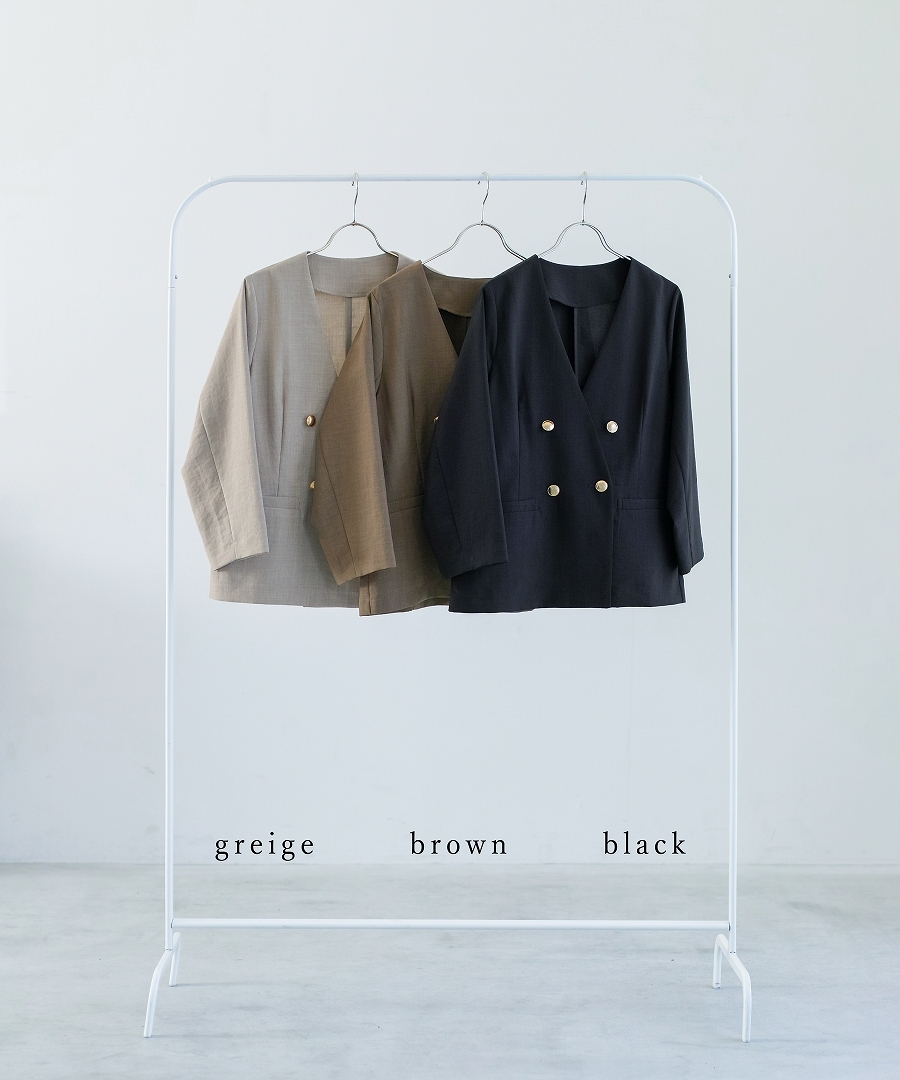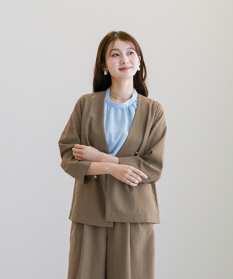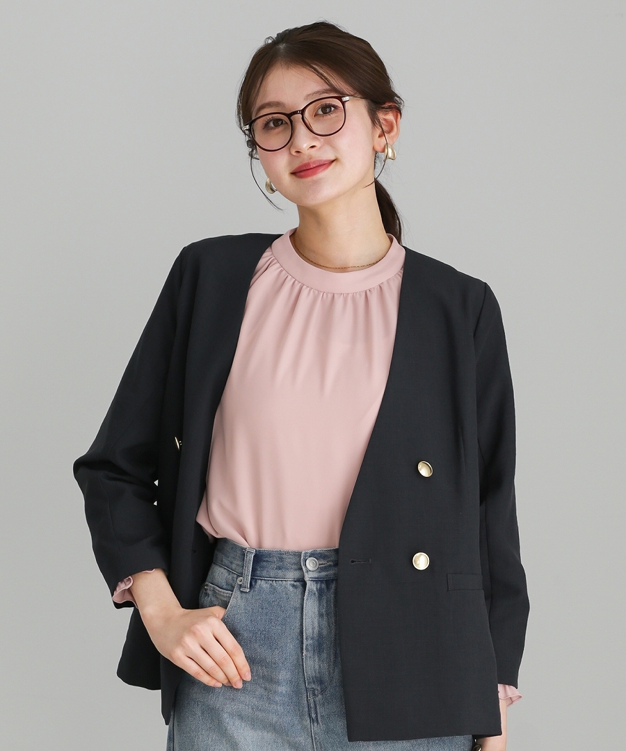 サップタンブラー ダブルジャケット 夏ジャケット 軽量ジャケット 涼しいジャケット ノーカラージャケット オフィスコーデ セットアップ対応 ゴールドボタン 通勤スタイル