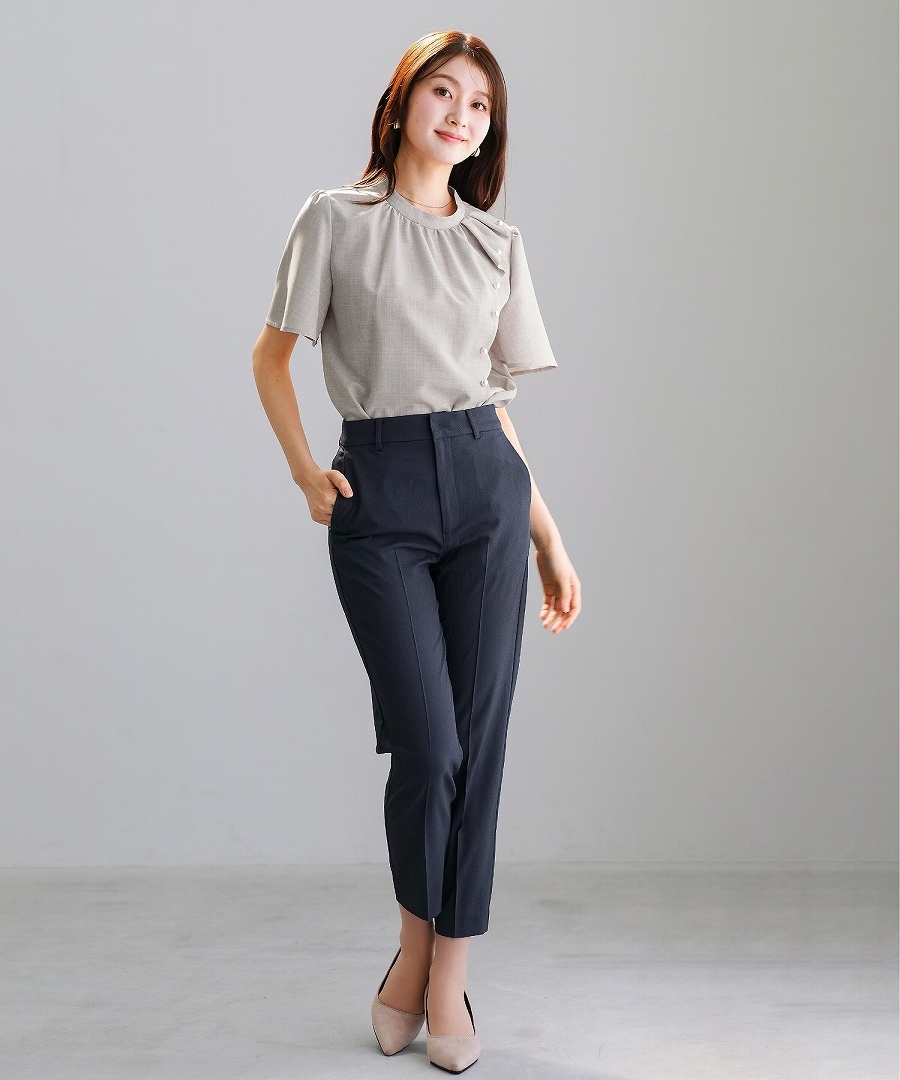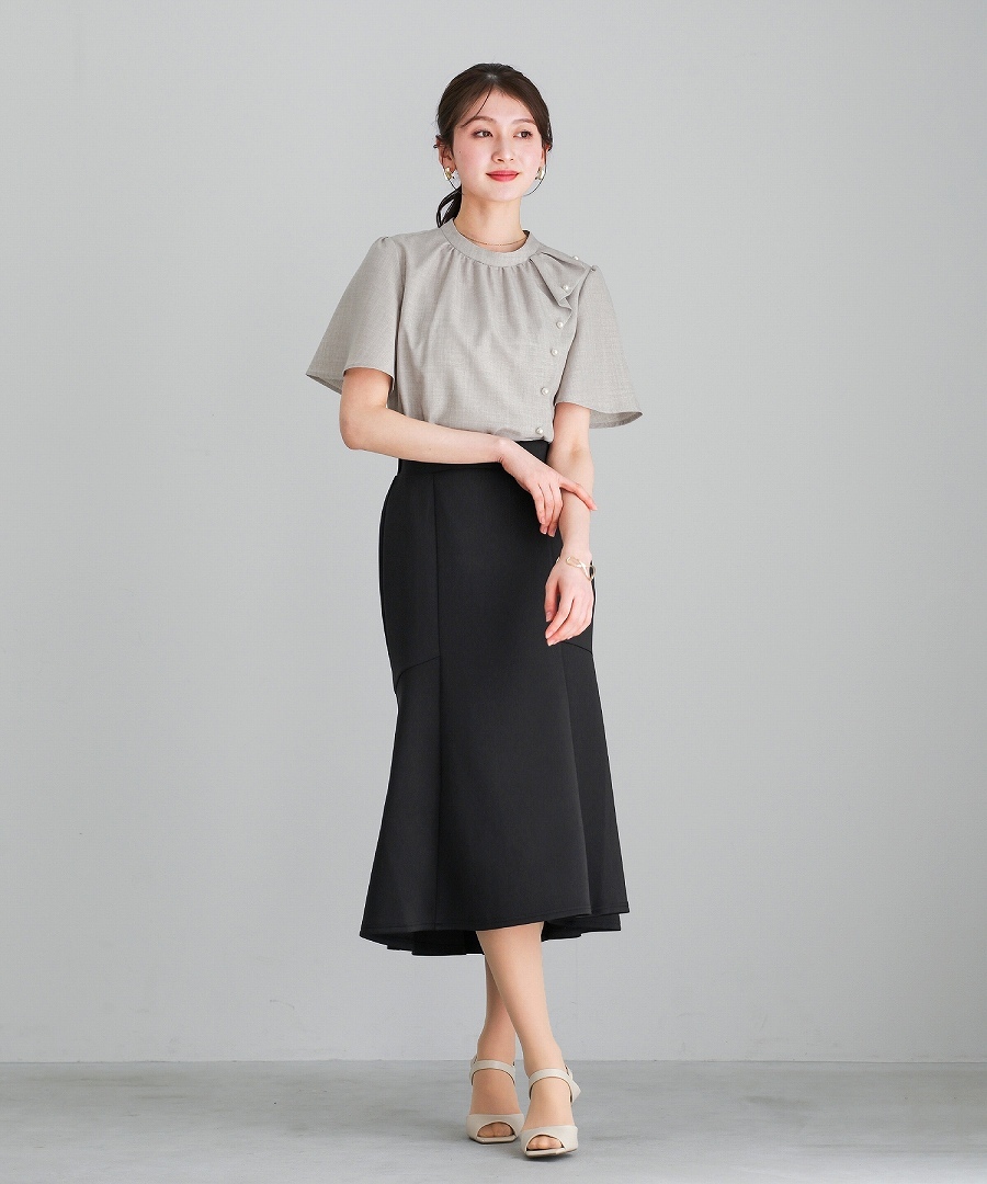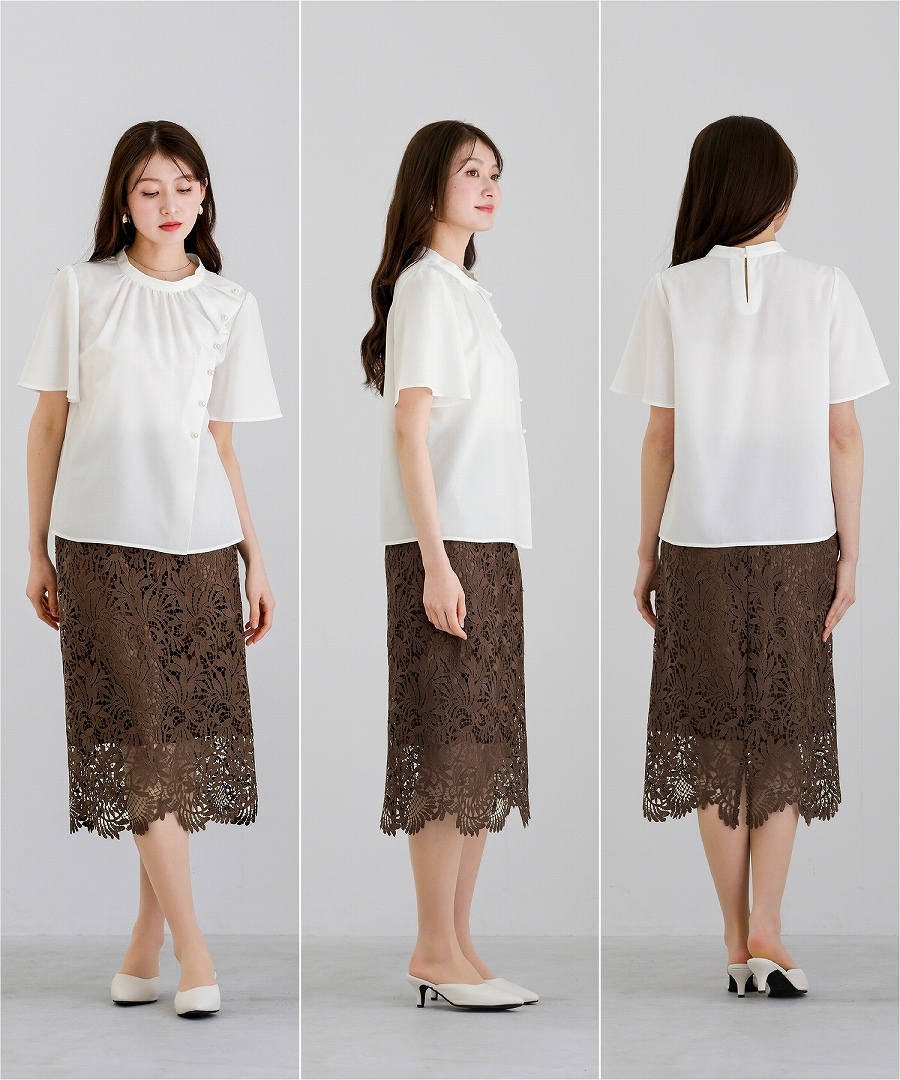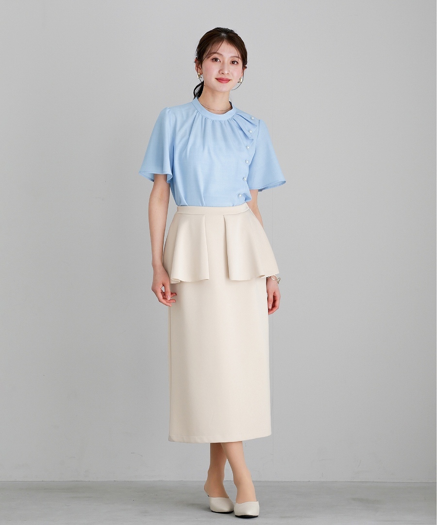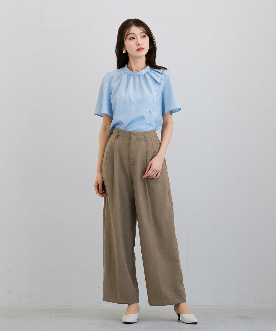 ブラウス 半袖ブラウス パールブラウス フリルブラウス きれいめブラウス オフィスコーデ 夏ブラウス レディーストップス 通勤コーデ 上品トップス