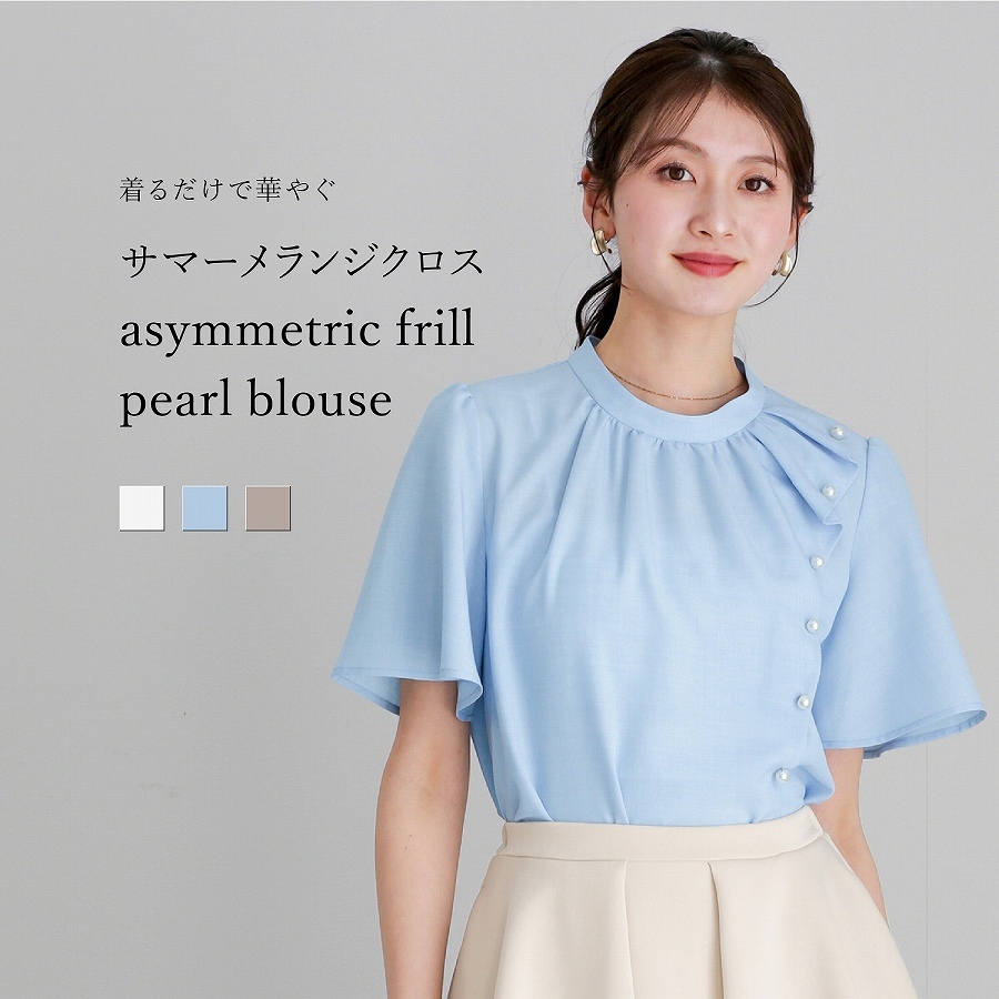 【 着るだけで華やぐ 】 サマーメランジクロス・アシメフリルパールブラウス