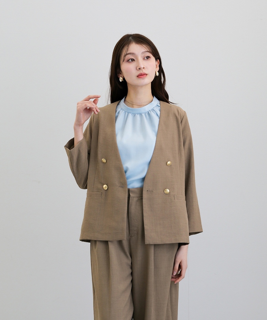 首元はすっきりとしたスタンドネックに、