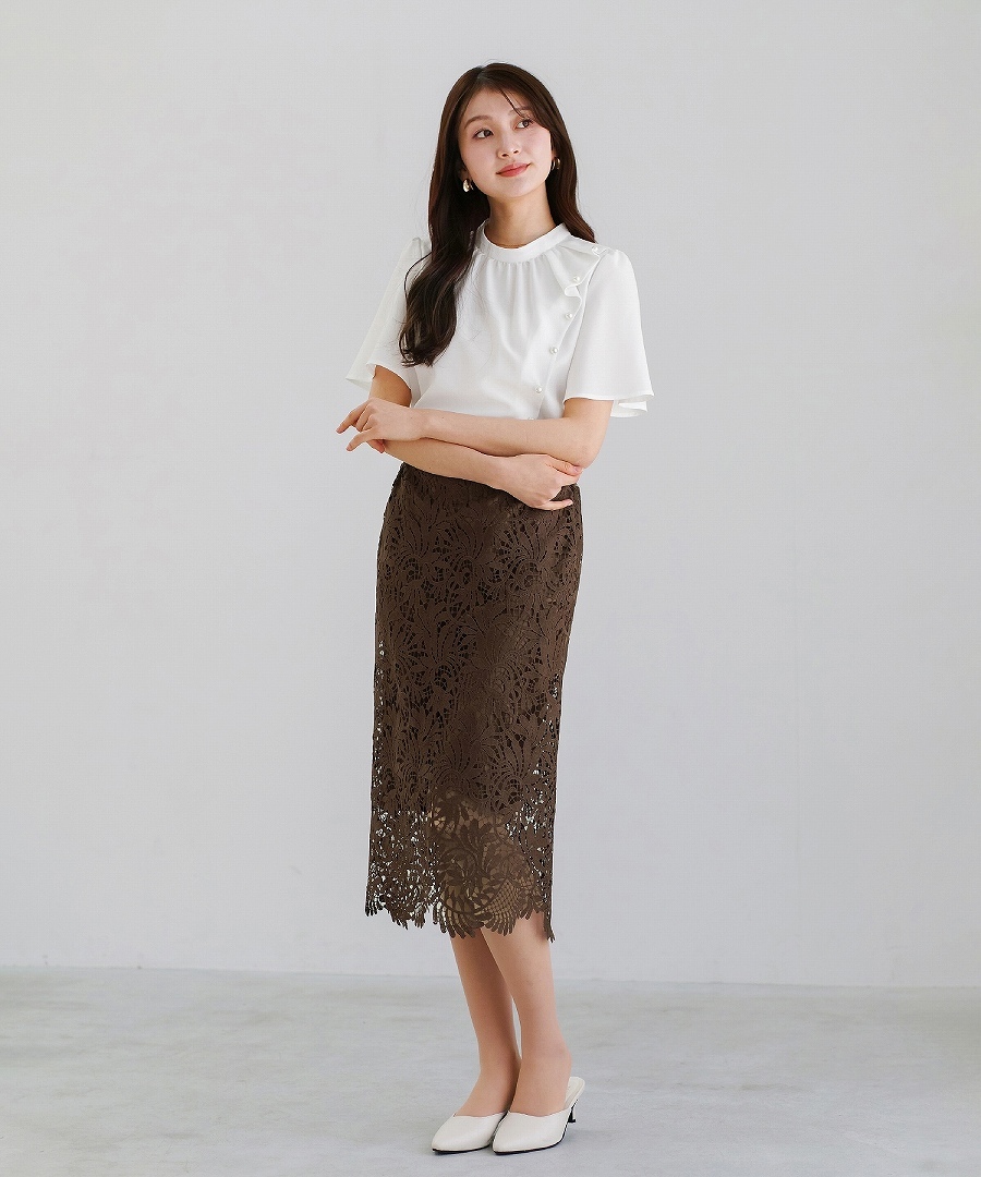 スタイリングを華やかに引き上げてくれるブラウスです。