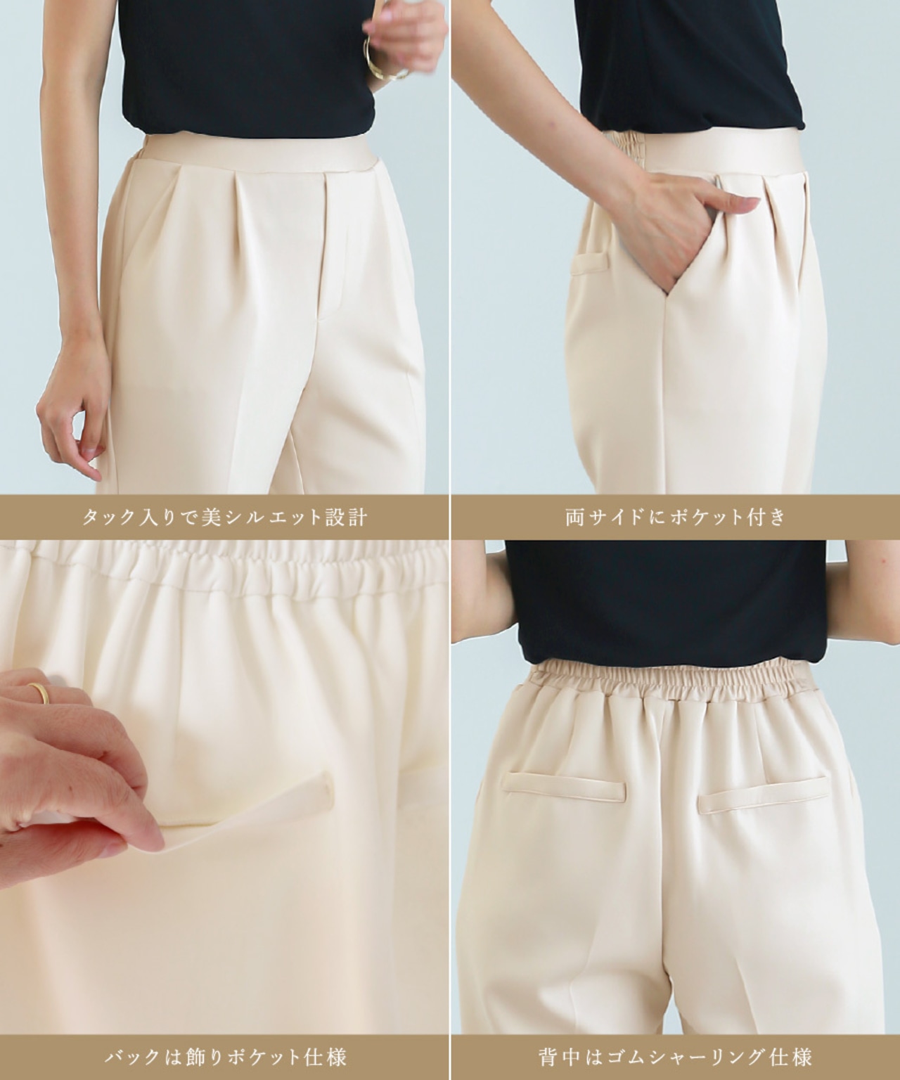 UVカット/接触冷感/軽量/保温性/洗濯機可/ウォッシャブル/ストレッチ/テーパードパンツ/レディース/通勤対応/オフィス/きれいめ/セットアップ可