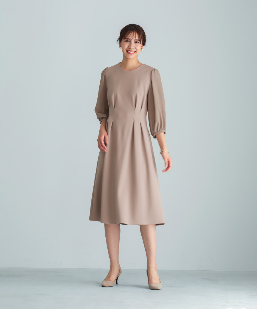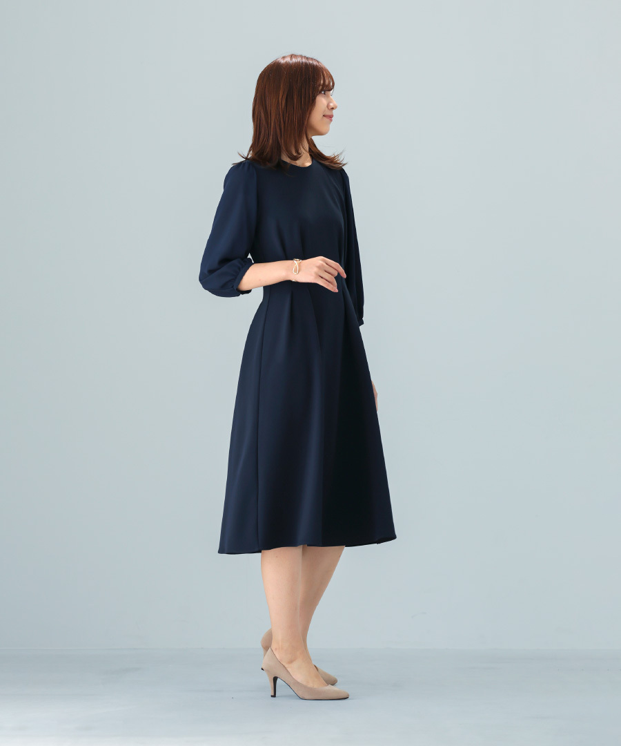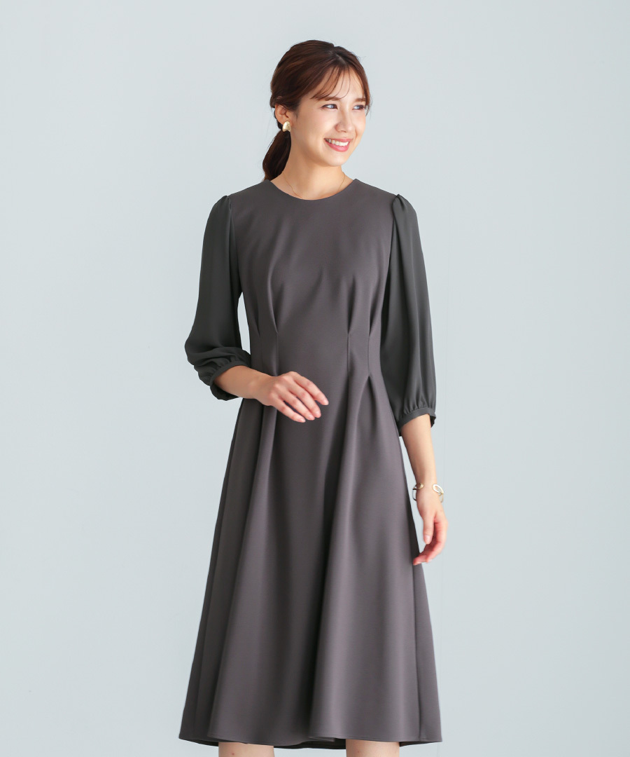 洗えて動けるワーママワンピ【手洗いできるハイストレッチジョーゼット】美フレアワンピース(775529)