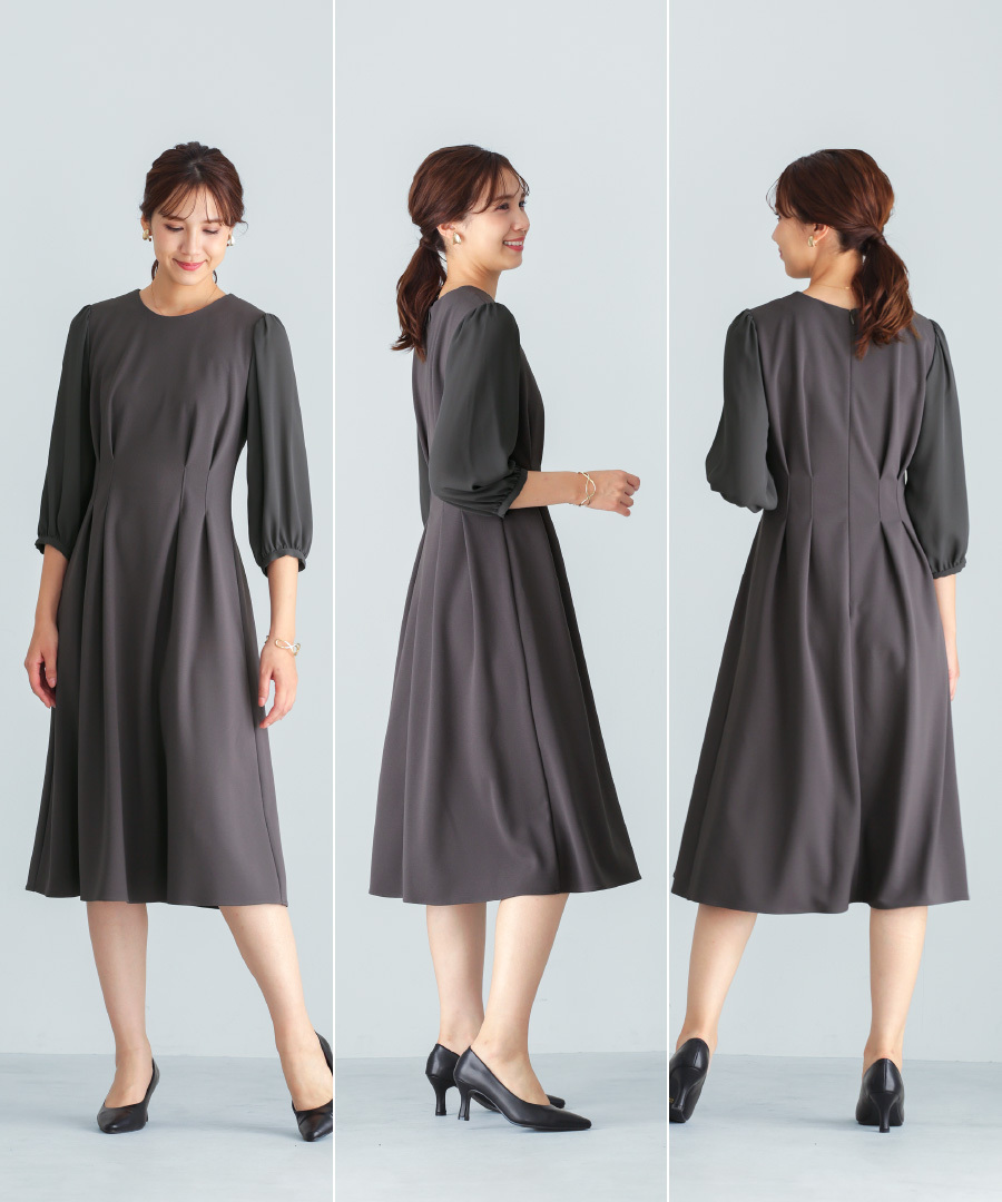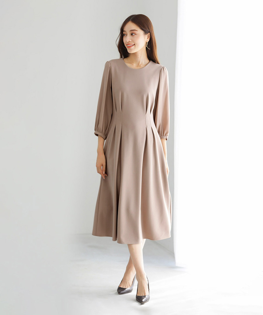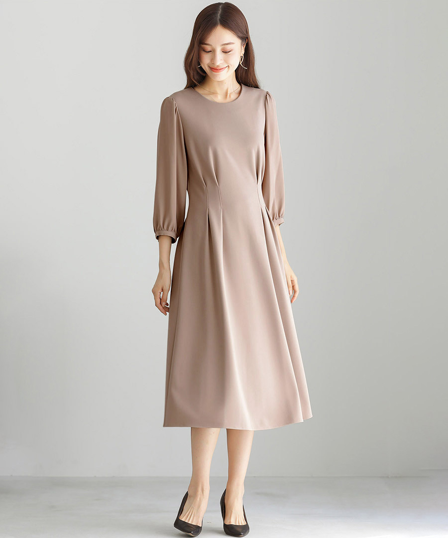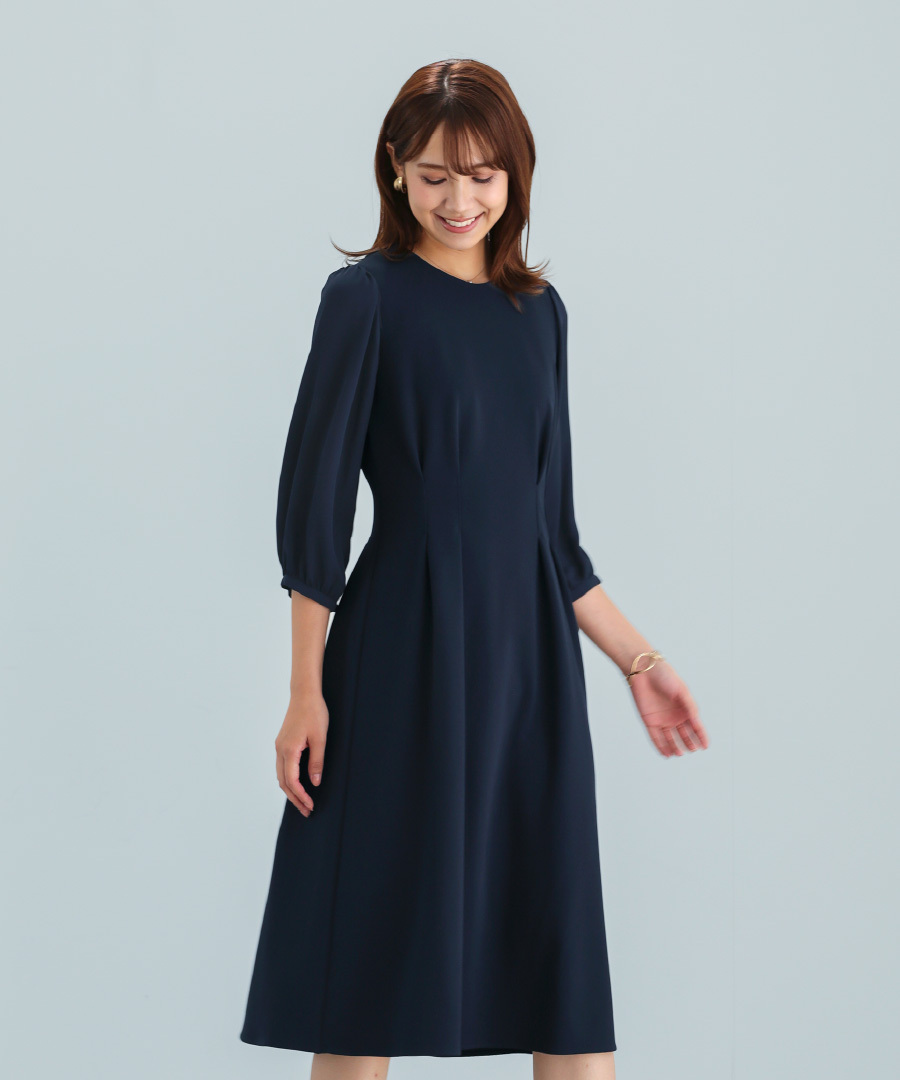 洗えて動けるワーママワンピ【手洗いできるハイストレッチジョーゼット】美フレアワンピース(775529)