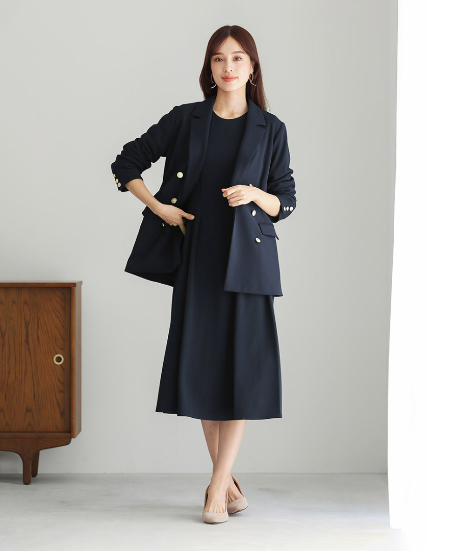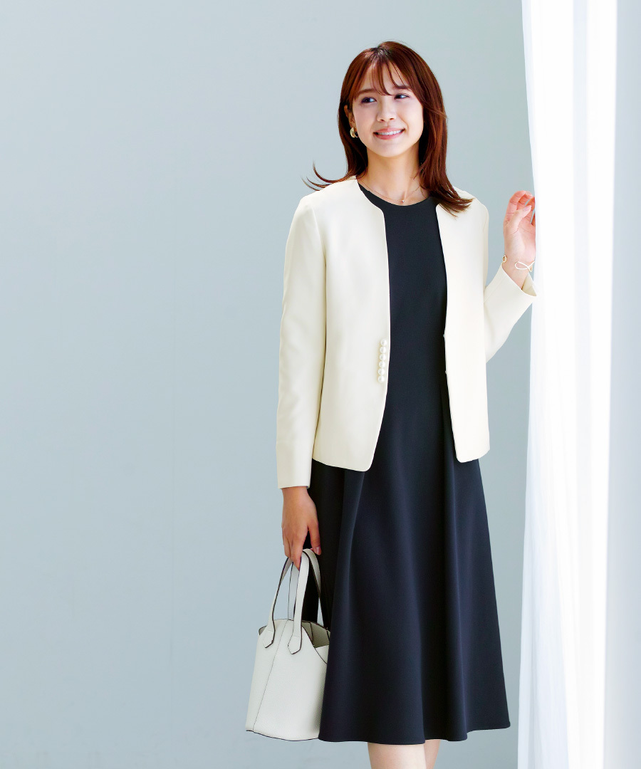 手洗い可 ウォッシャブル ハイストレッチジョーゼット ワーママスーツ フレアワンピース 美シルエット 体型カバー きれいめ セレモニー レディース 通勤対応 オフィス デイリー