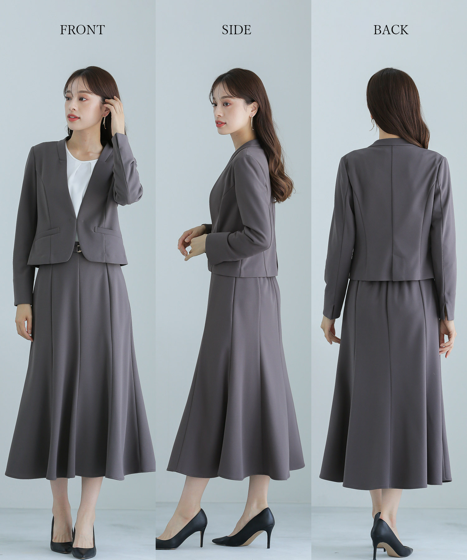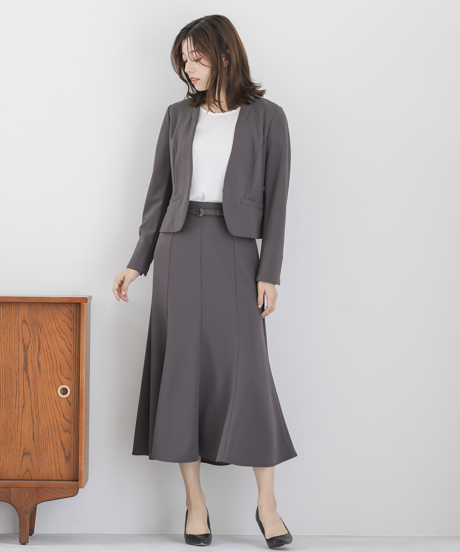 洗えて動けるワーママスーツのスカートタイプ!【手洗いできるハイストレッチジョーゼット】カラーレスジャケット&マーメイドスカートセットアップスーツ/784523-775528